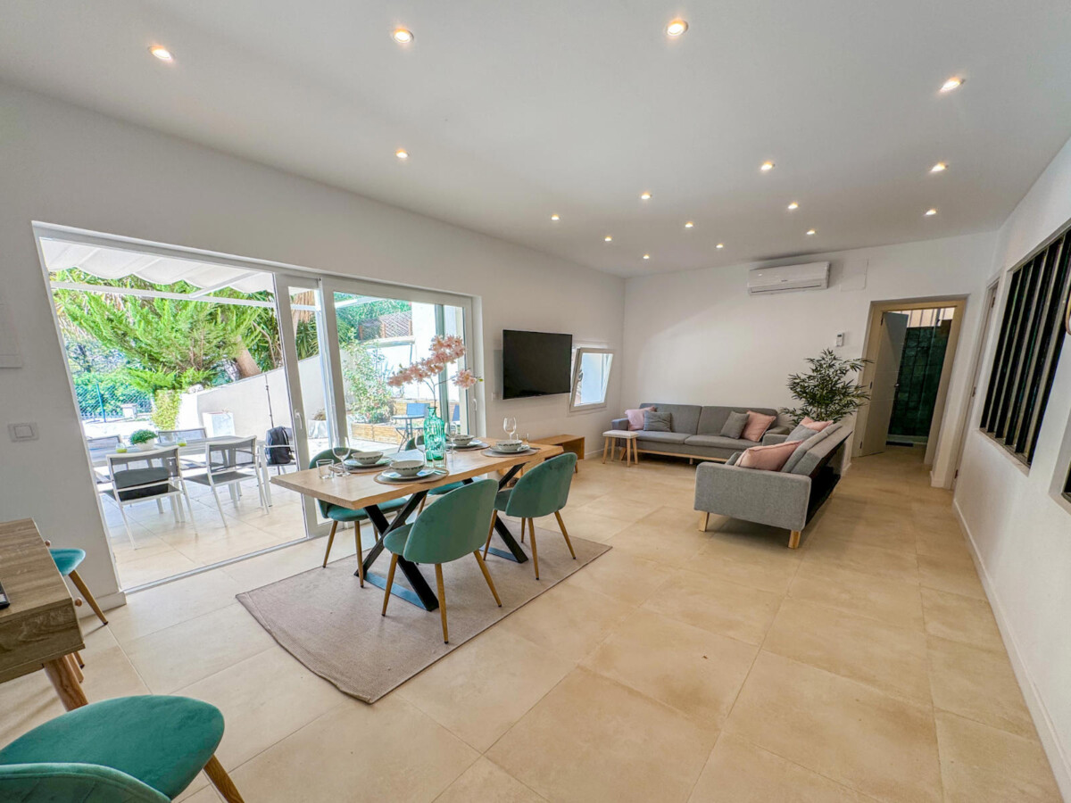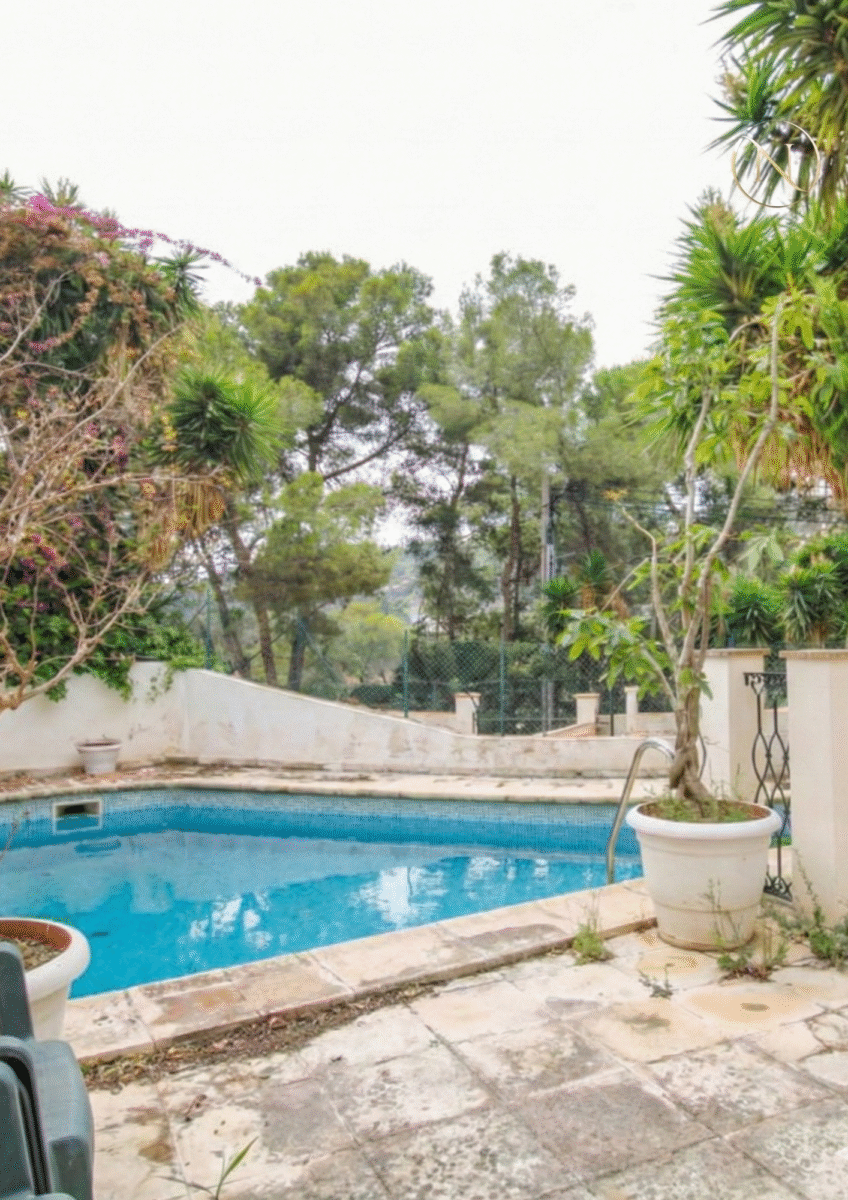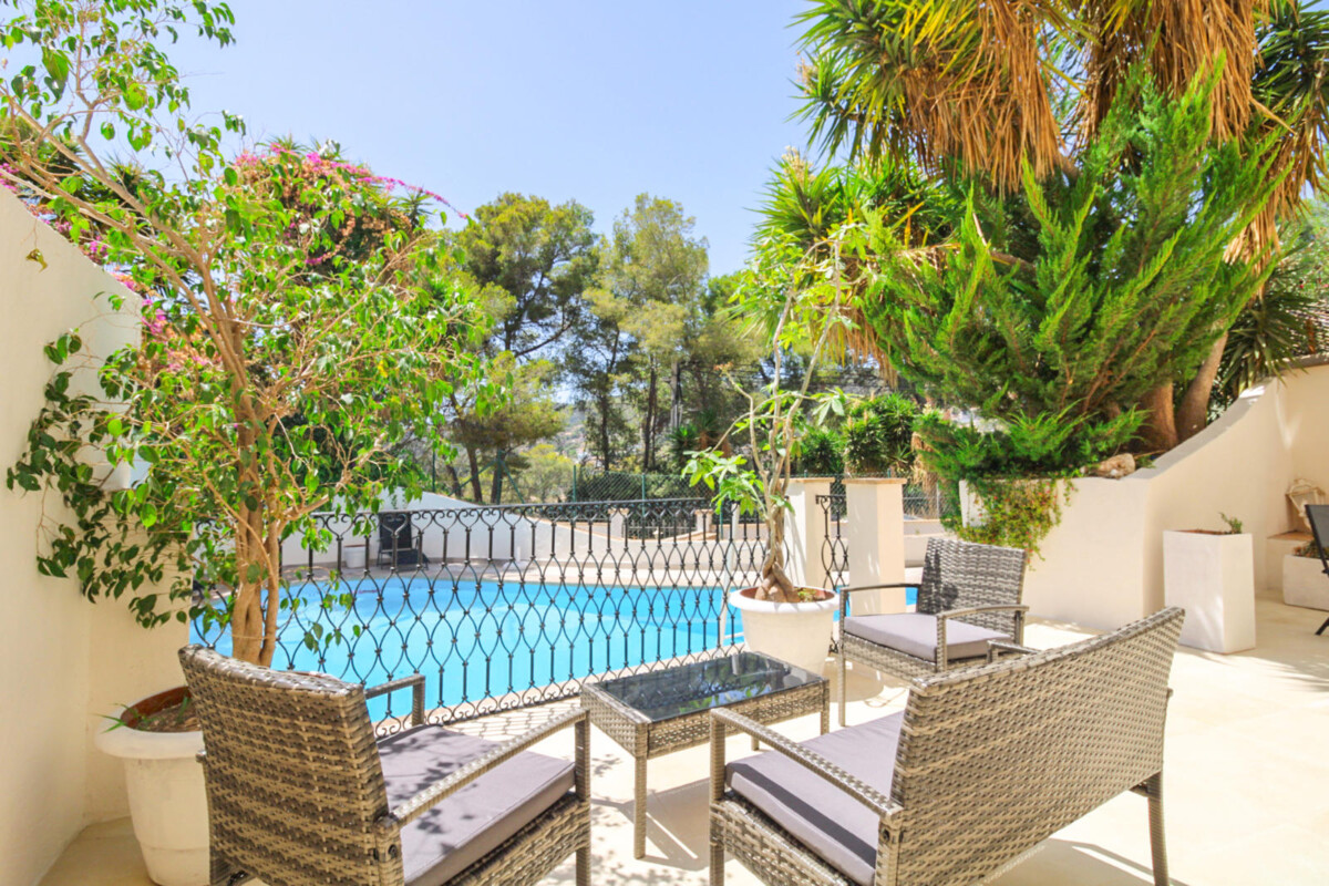 También se rehabilitó la zona exterior, creando una terraza más aprovechable y poniendo en valor la piscina privada como elemento central de la vivienda.